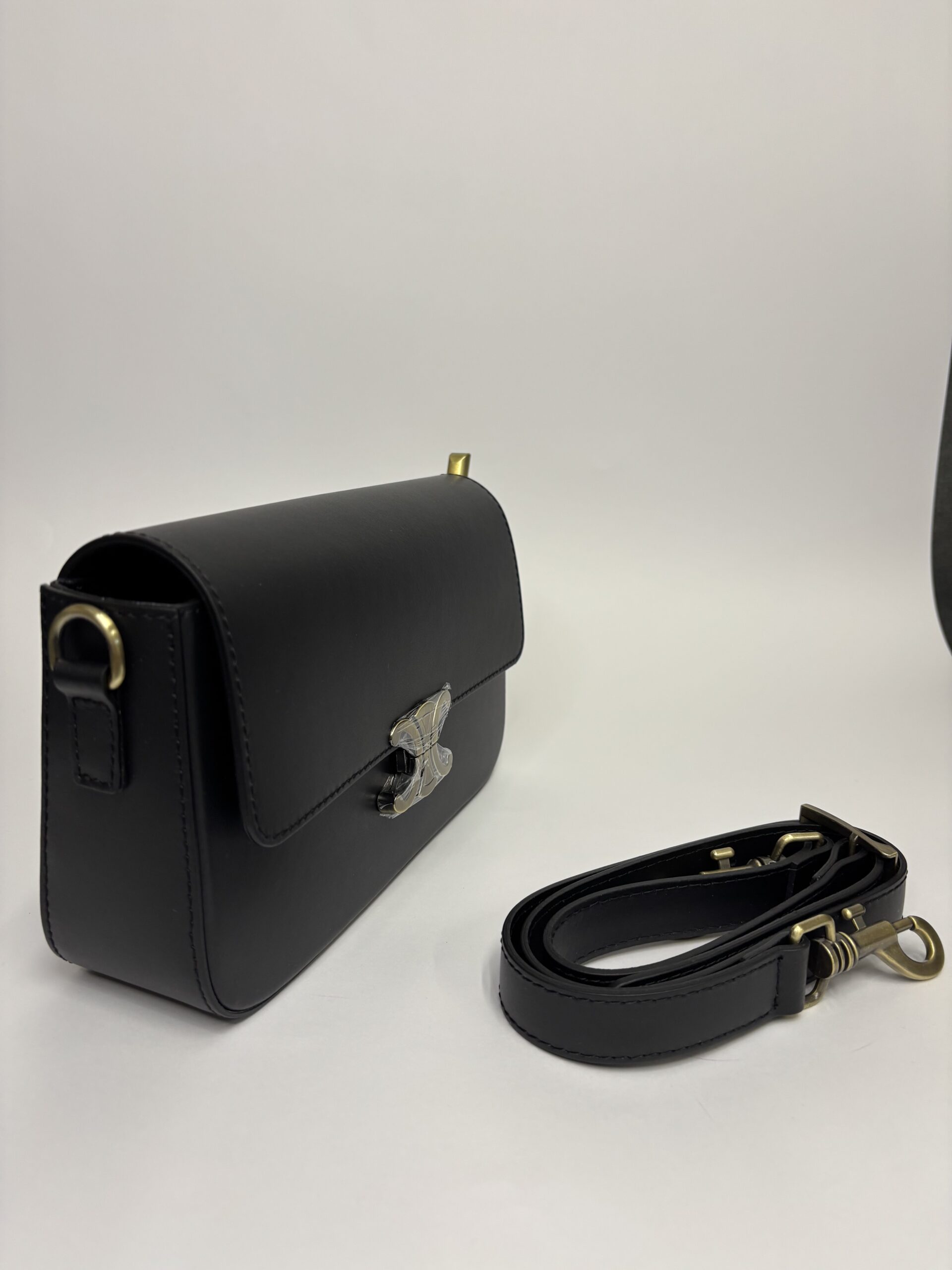 Black masterpiece of Italian craftsmanship — this genuine leather bag exudes timeless elegance.