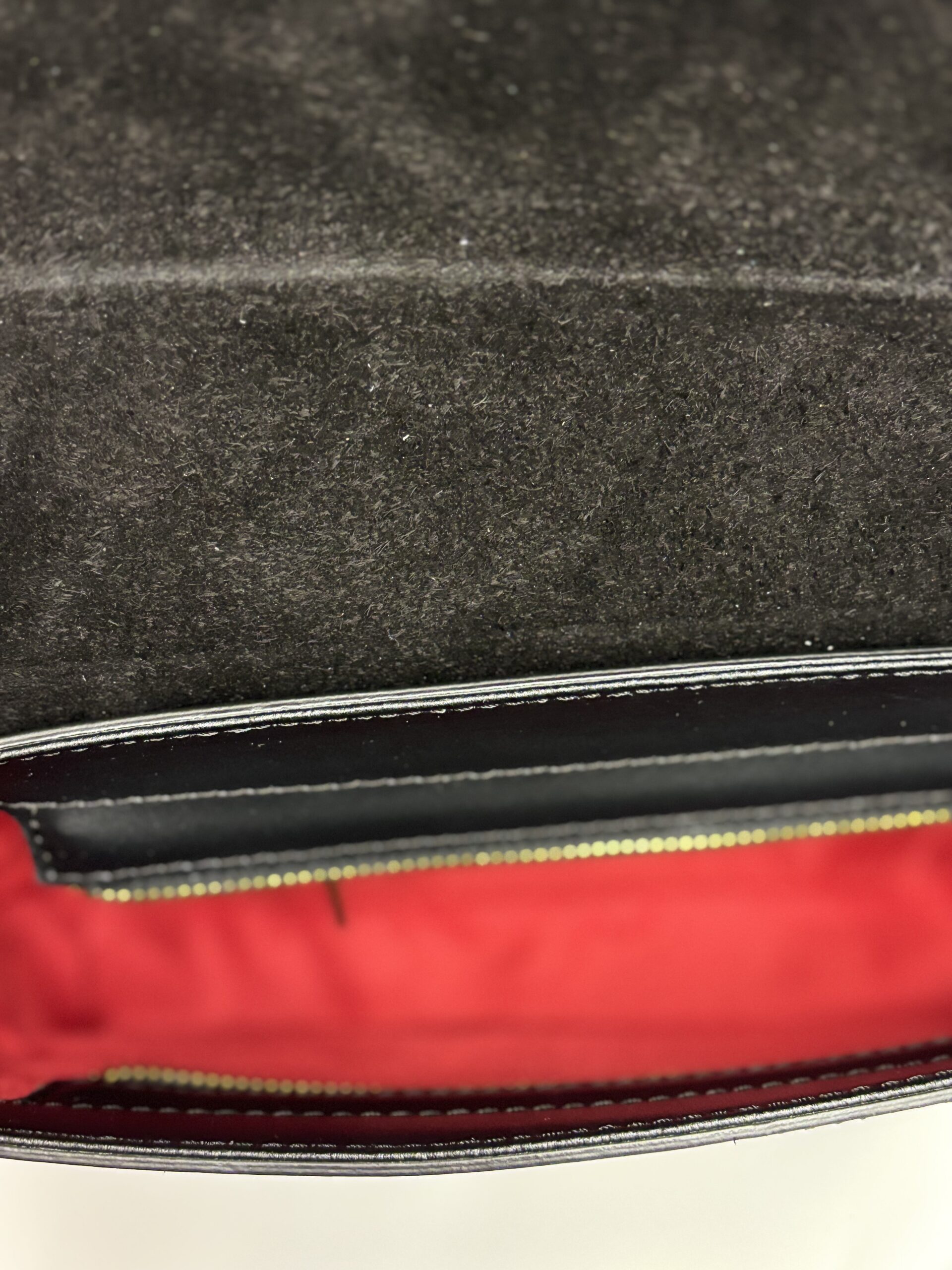 Crafted from smooth Italian leather, adorned with refined gold details, and lined with a rich red interior that whispers luxury in every detail.